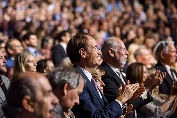 この限りなき祝賀の夜を広い視野で捉え、Scientology宗教の教会指導者デビッド・ミスキャベッジ氏は、オーディトリアムを揺るがした数え切れないほどの継続的な賛辞の最初のものにやってきました。 すぐに、彼は何千もの聴衆を、2時間半の冒険へ導きました。それはLRHの調査と発見の道筋を年代順に記しただけでなく、彼の永遠の足跡への尽きることのないこだわりも公開しました。