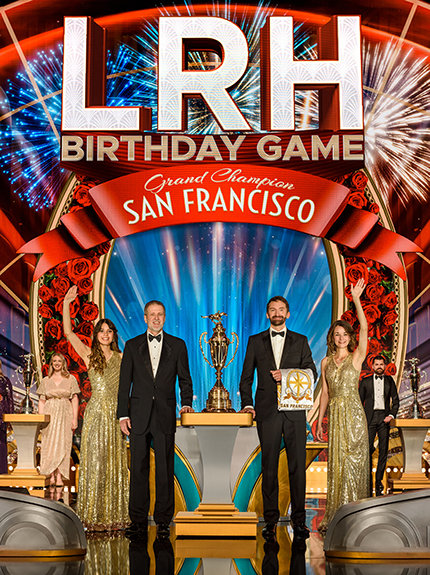 この夜は、3つの壮大なハイライトを中心に展開しました:3つの新しいランドマークの発表—LRHが壮大な偉業を成し遂げ、今や永遠に記念される場所。それから、間近に迫った、最新の理想のScientology教会のグランド・オープニングのニュース。そして、拡張を贈るというゴールによって推し進められた、国際レースの勝者を発表する伝統的なバースデー・ゲーム。