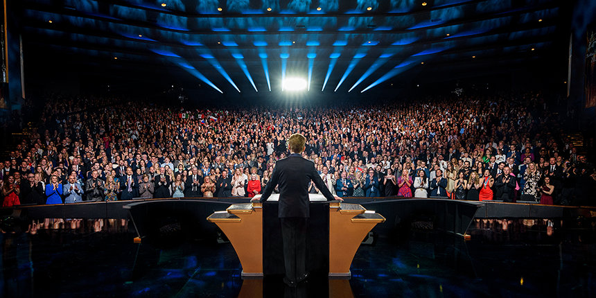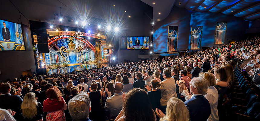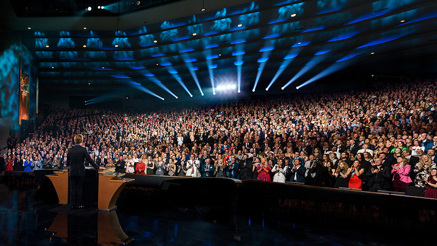 高揚感あふれる展開が、夜の最も期待される要素へと突入しました。毎年恒例のLRHバースデー・ゲームの勝者の発表—4つの異なるリーグで1位をめざす国際レースです。 6つの大陸、何百もの都市で、Scientologyミッション、教会、上級オーガニゼーション、そしてコンチネンタル・リエゾン・オフィスが、絶え間ない勢いで前進します。 スピードだけでなく拡張の度合いによっても定義付けられ、今年のレースは史上最も激しいものとなりました。