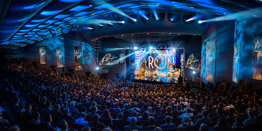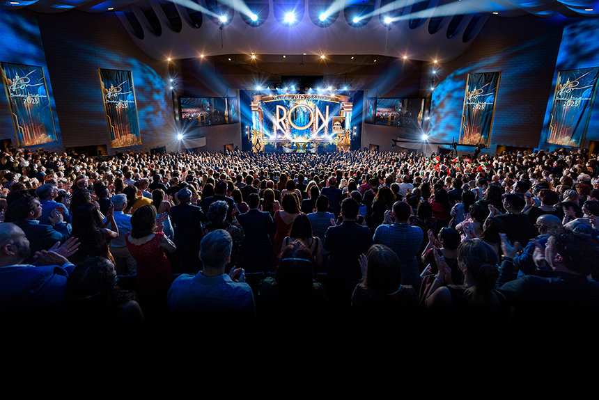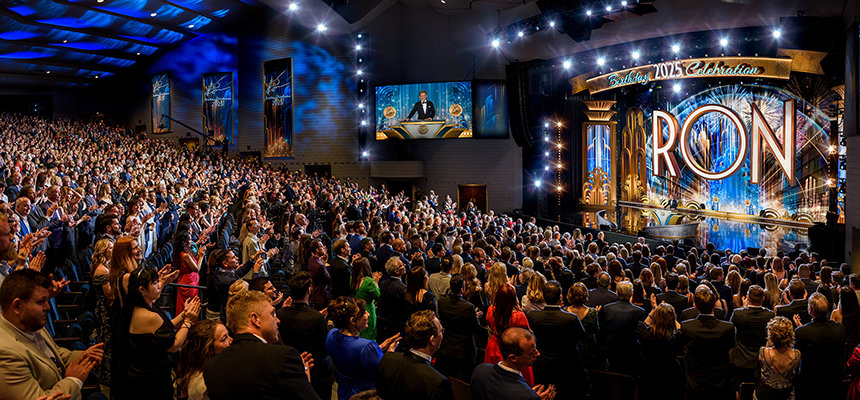 「今夜ご紹介すべきものがもうひとつ残っています。 新たな世界へと一歩踏み出し、未来に待ち受けているものに目を向けるべき時です」と彼は言いました。 そして数千もの来場者にとって、それは予想外の、忘れられない、そして疑いのない啓示でした。未来のL. ロン ハバード・ホール—フラッグのキャンパスを飾る傑作—の息を呑むようなプレビュー。