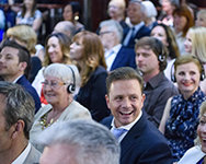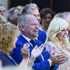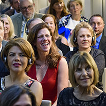 翌晩、ゲストたちにはL. ロン ハバード(LRH)に敬意を表する伝記プレゼンテーションが紹介されました。 それは、出席者にハバード氏に関する数多くの初公開の逸話を知らせる素晴らしい夜でした。 LRHの伝記作家ダン・シャーマン氏によって紹介された話は、ハバード氏の優しさとビジョンについてでした。