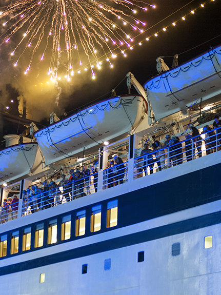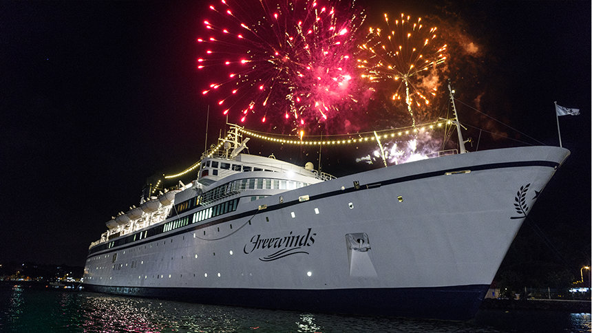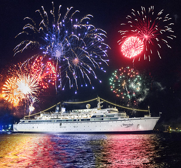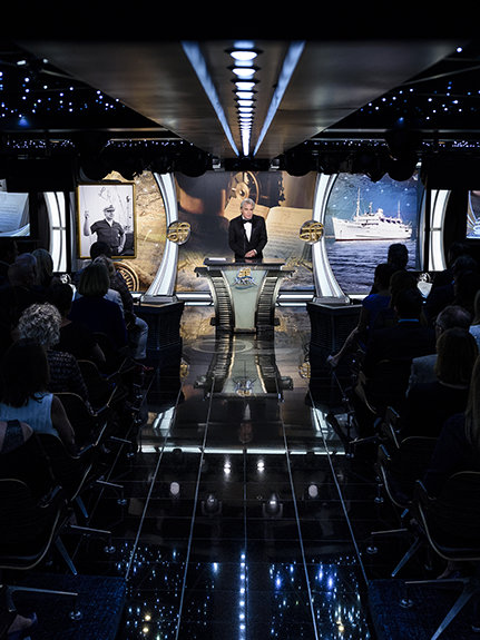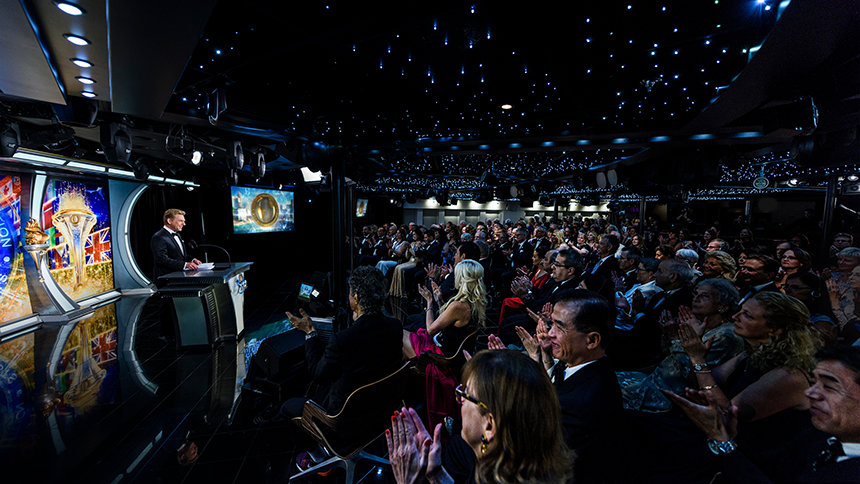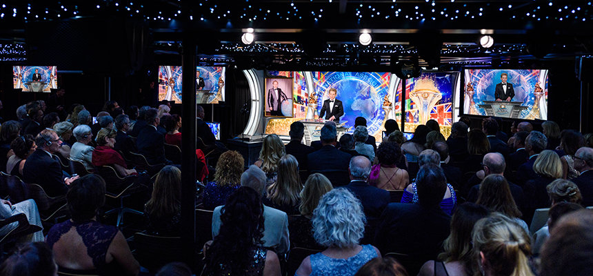 最初の夜にミスキャベッジ氏が聴衆に向けて挨拶した際、フリーウィンズの数々の功績にも敬意を表しました。5人の船長と133人の認定救命員たちを含む乗組員たちは、通算5000年を超す海事経験があります。 彼は同船が処女航海以来ずっと、「七つの海で最も安全な船」という栄誉を得てきたと述べました。