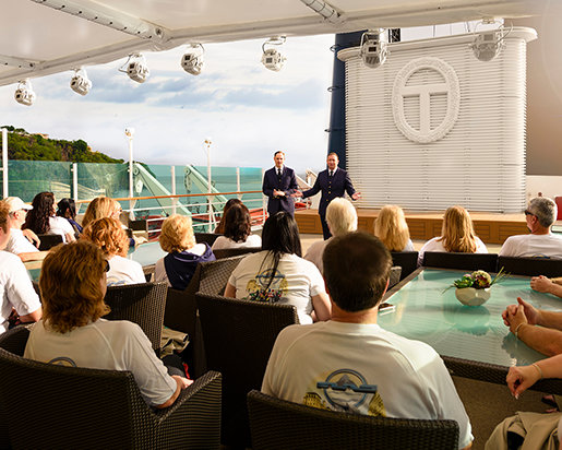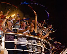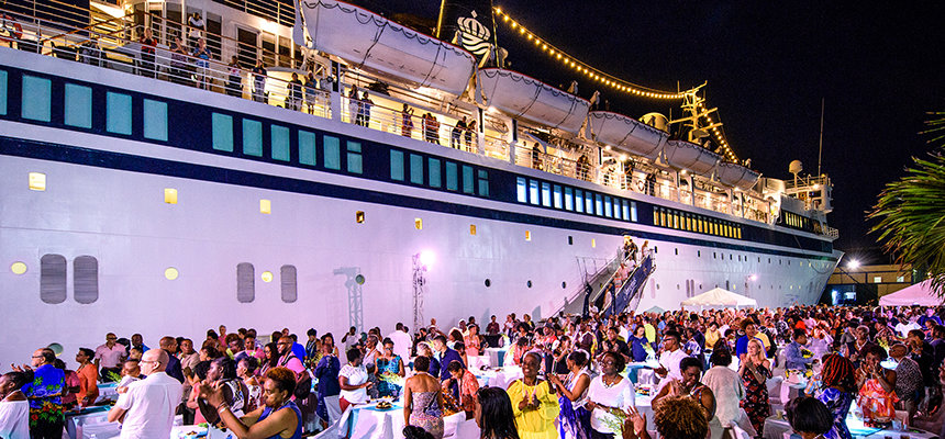 バルバドスのブリッジタウンと呼ばれるクルーズ船の港にゲストが到着し始めたのは、6月15日金曜日。白く輝く、9つのデッキ、134mの船が待つ場所です。 午後6時から、世界中からの最も献身的なサイエントロジスト250人以上が、ドックで、またはすでに乗船して、島の風を受けながら手すりに立っていました。 王立バルバドス警察バンドのスチールパンが爽やかな空気の中に鳴り響き、雰囲気は期待感で高まり、地元の高官たちも別れを惜しみました。 フリーウィンズの船首を波止場から海上へと向けると、30周年記念を称えて、壮大な花火がブリッジタウンの空に開花しました。
