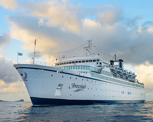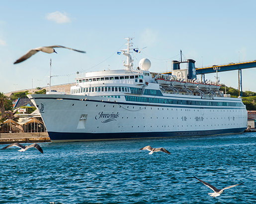 カリブの人々はすぐに熱帯諸島、美しい景色とカリプソ音楽を楽しんでいる休暇旅行者を乗せて、島から島へとゆったりと滑る堂々としたクルーズ客船のイメージを呼び起こします。 フリーウィンズは5つ星の料理、見事に整えられた個室、典型的な大型定期船の優雅さといった、他の高級船の特徴を間違いなく持ち合わせおり、乗客は紛れもなく、西インド諸島の保養地を楽しんでいますが、他のものと比較することはできません。