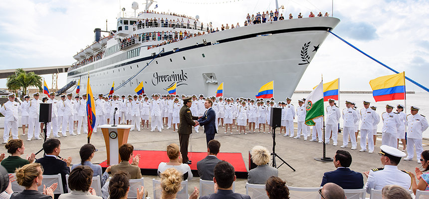 公式なプレゼンテーションの式典が、処女航海の最後の寄港地バルバドスのブリッジタウンで開催され、コロンビア国家警察を代表して、カルロス・ラミロ・メナ准将は、ミスキャベッジ氏に、准将ハイメ・ラミレス・ゴメス監察総監トランスペアレンシー・メダルを授与しました。 賞は国家警察の最も名誉あるもので、「勇気、勇敢さ、正直さ」そして「最高の理想、道徳と倫理的価値観の提示」を象徴するものです。 ミスキャベッジ氏にメダルを授与するにあたり、メナ准将はこう述べました。「この偉大なサイエントロジー組織を導いている人にこのメダルを授与する理由は有り余るほどあります。 すべてのトレーニング、動機そして、すべての警察官とコロンビア軍士官だけでなく、L. ロン ハバードの技術と彼が着想を与えた人権キャンペーンから恩恵を受けているすべての市民に対して、ミスキャベッジ氏が与えてくれた尊重に対して、全国警察は称賛し、アクノレッジし、私たちの大いなる感謝の意を具現化します。全コロンビア警察の名のもとにお祝い申し上げます。 私たちが新たな社会を築くために、計り知れないほど貴重な支援を提供してくれたこと、感謝します。 かつてハバード氏はこう言いました。『私たちは人を救う… 私たちは永遠の中で働いています。』」