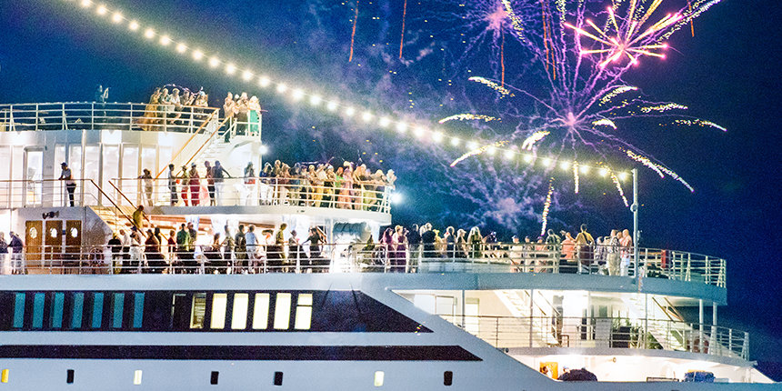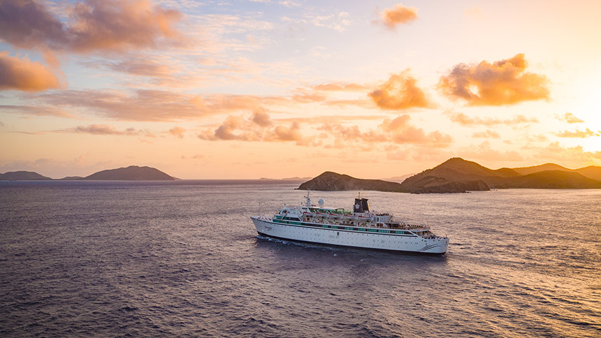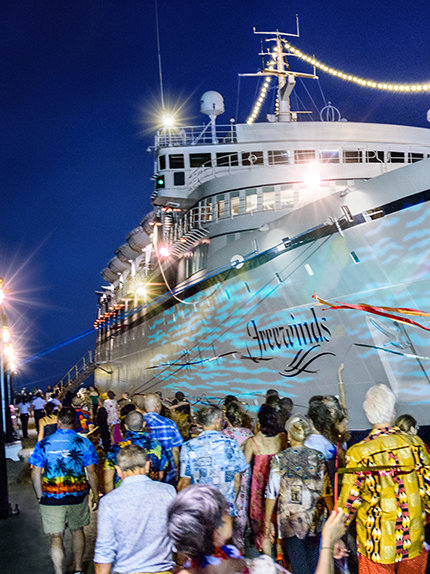 さわやかな風がバセテールの港を吹き抜ける、6月15日の土曜日の夜、何百人もの地元の人々や政府高官が乗客たちを見送り、フリーウィンズは忘れられない旅となるよう設定されたものへと出航します。