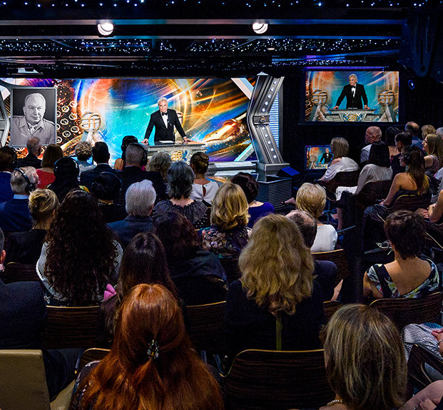 翌晩、ゲストたちは作家L. ロン ハバード(LRH)に敬意を表する魅力的なプレゼンテーションへ誘われました。 その夜は、LRHの伝記作家ダン・シャーマン氏が、ハバード氏の著作の影響と、1930年代と40年代を通じての作家志望者との個人的な手紙のやり取りからの抜粋で聴衆をもてなします。
