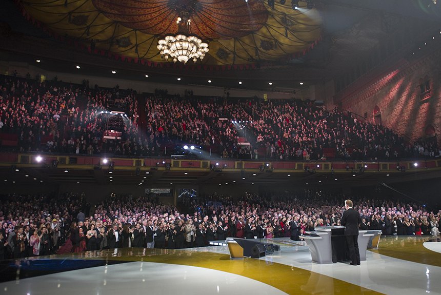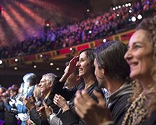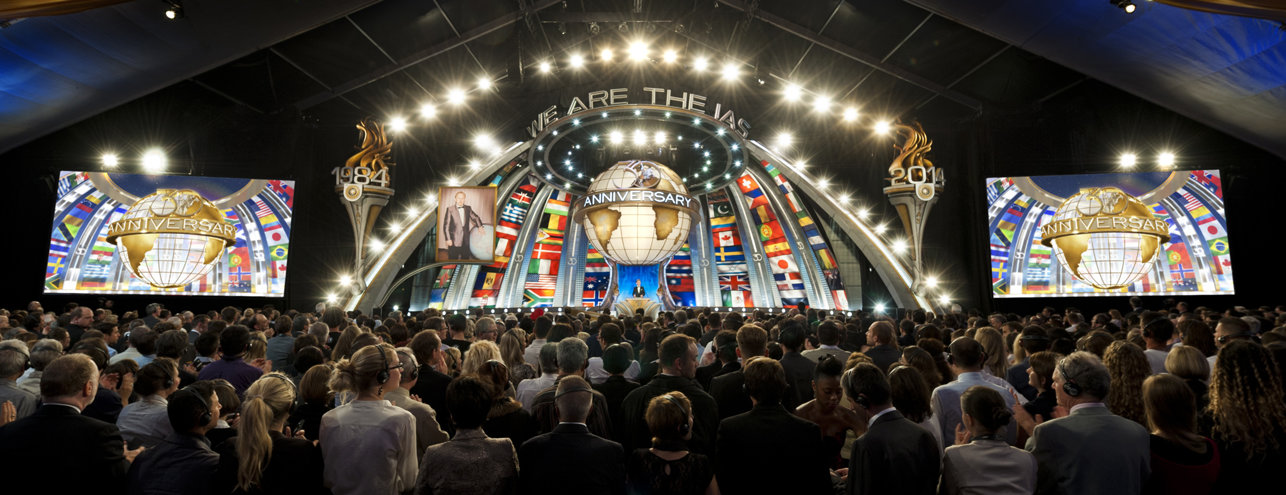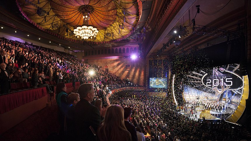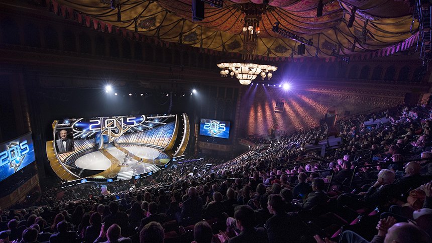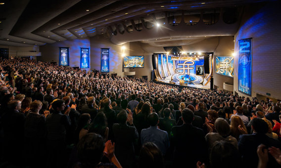ロサンゼルスで有名なシュライン公会堂でのそういった独特な雰囲気の中、満員の会場に詰めかけた人たちはサイエントロジー教会の歴史的瞬間を目の当たりにしました:毎年恒例の新年祝賀会は技術の黄金時代 第II弾の幕明けからの一年と、この宗教の文字通り、そして精神性において前例のない拡張の365日を記しました。