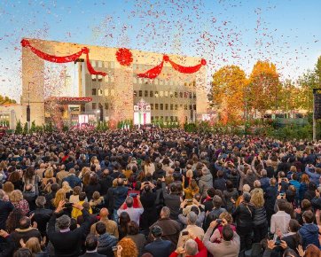 ロサンゼルスの伝説的なシュライン公会堂における盛大な新年祝賀会で、何千もの人々が感動的な達成の12ヵ月、この宗教の歴史的な成長を示す2015年を祝いました。