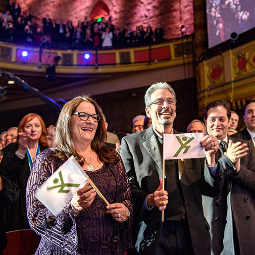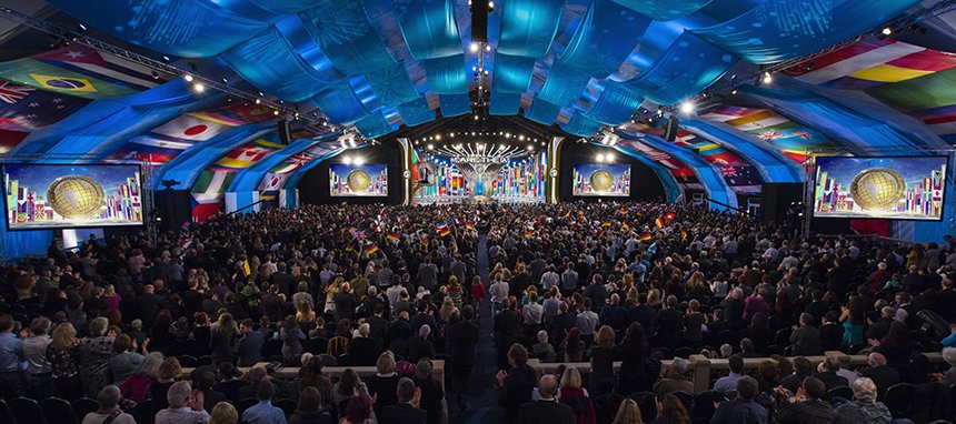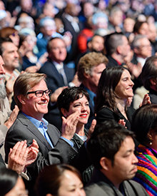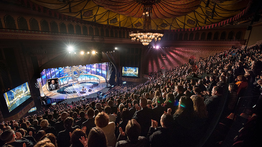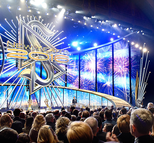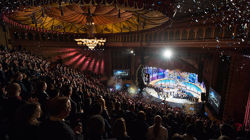 教会員たちとそのゲストたちが、2015年の比類のない成長に敬意を表し、2016年とその先に向けてはずみをつけるために、ロサンゼルスのシュライン公会堂に駆けつけました。