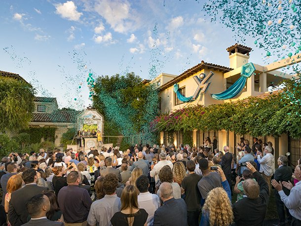 翌日の9月13日の落成式は、芸術家や社会のリーダーに薬物やアルコールのリハビリテーション・サービスを提供する、カリフォルニア州オハイ山頂の豪華なナルコノン・センターでした。