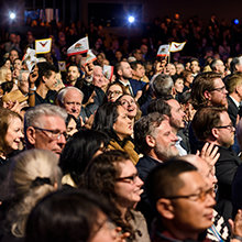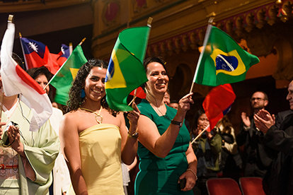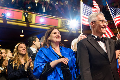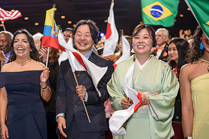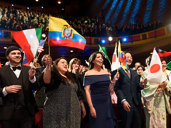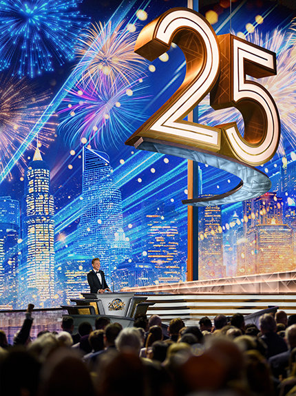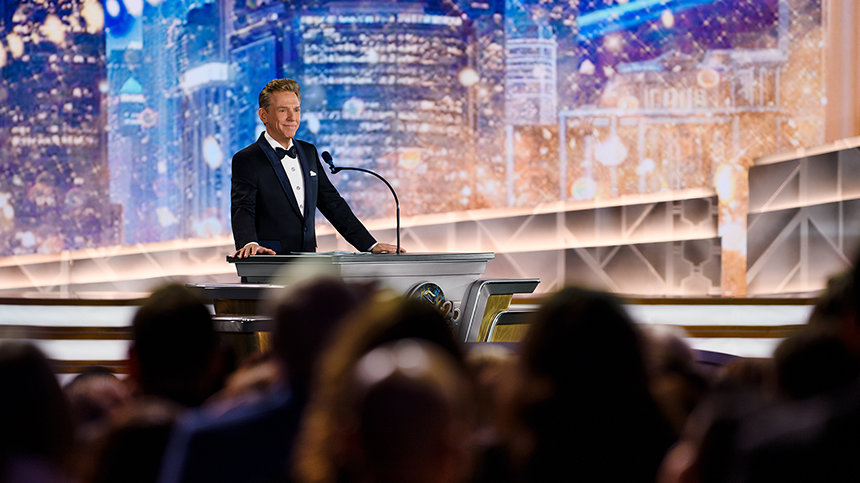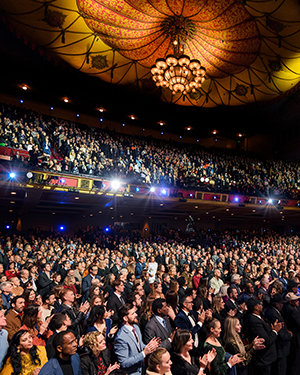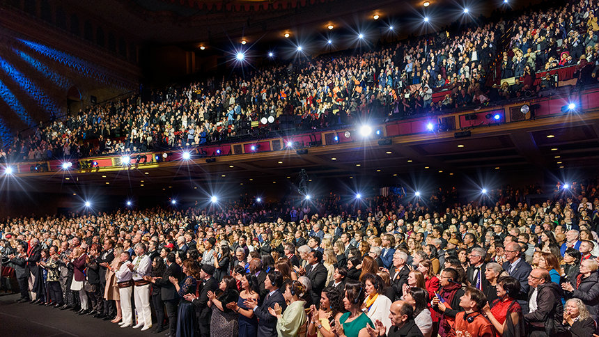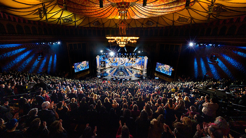 ロサンゼルスのダウンタウンでの新年の祭典に必要な全て—優雅さ、エネルギー、そして期待感が織り成す眩さ。 正装。 象徴的な会場。 興奮のざわめき。 その全てが、忘れられない夜のための舞台を準備し、6,500人以上の参加者がシュライン公会堂に次々と入っていきました。