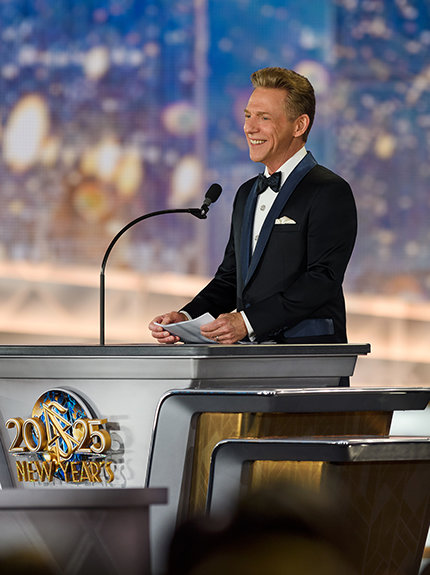 そして、会場中に響き渡る大歓声と共に、Scientology宗教の教会指導者、デビッド・ミスキャベッジ氏は、この新年祝賀会に全員を歓迎するために60メートルのステージを進みました。