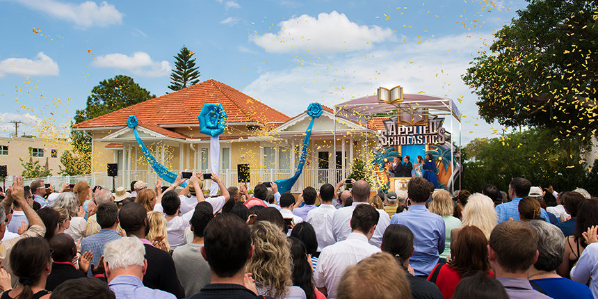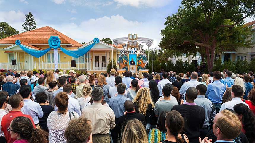 4月16日、その解決策の一環として、フロリダ州クリアウォーターに、アプライド・スカラスティックス地域学習センターが全面改装されて開設されました。 読み書き能力の欠如と、その所産である貧困と犯罪に挑むという唯一の目的のために、この式典に1,000人以上の参加者が集まりました。